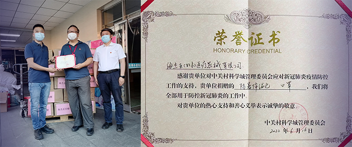 第一時(shí)間投入醫(yī)用口罩生產(chǎn),支持抗疫行動(dòng),先后向西北旺地區(qū)、花園路街道、中關(guān)村科學(xué)城捐獻(xiàn)口罩與防暑降溫物資。